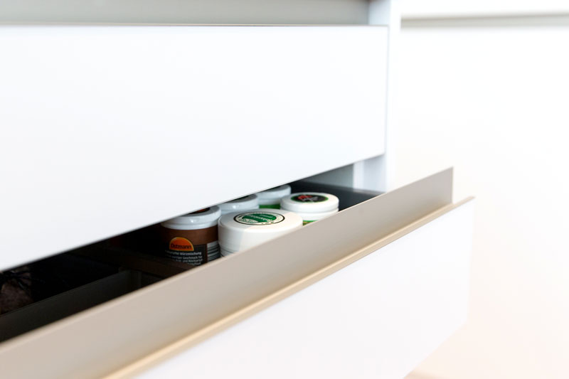 Rückseitig Stauraum Hochschränke Grifflos Polarweiß mattlack